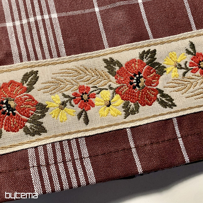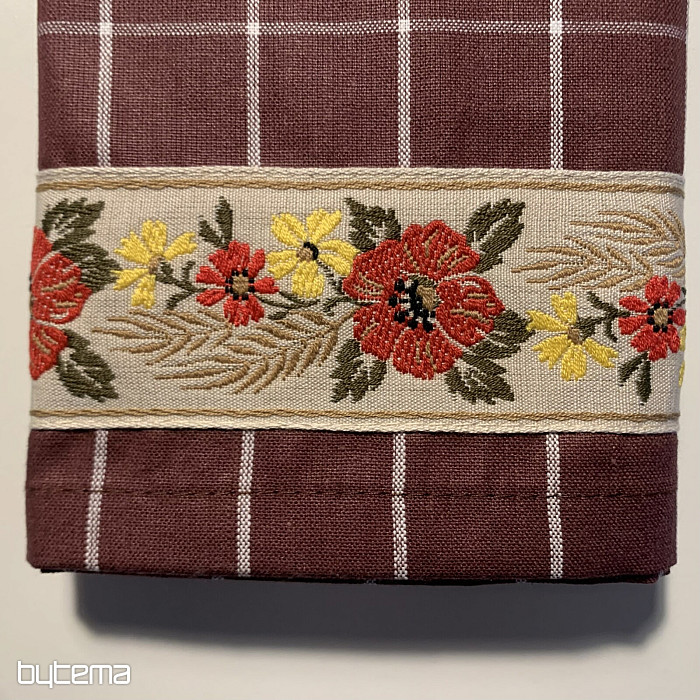Mehke bombažne kuhinjske krpe s karo vzorcem in cvetličnim robom na spodnjem delu. Čudovita in nežna dekoracija za vašo kuhinjo.