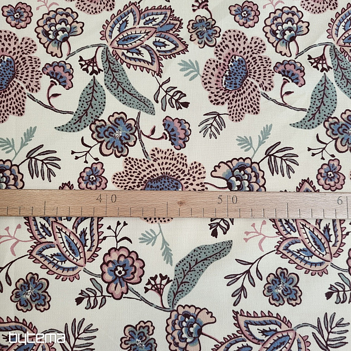 Blago z večjo vsebnostjo bombaža, 220 g, v vzorcu cvetočih boemskih rož bo čudovito izgledalo na okrasni zavesi ali prtu v vašem domu.