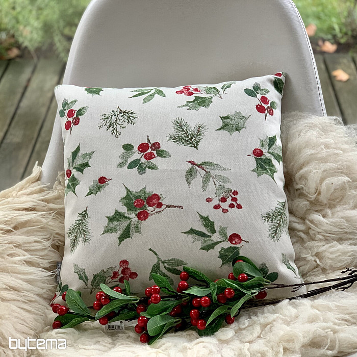 Božična okrasna prevleka za blazino z bodiko in rdečimi jagodami je simbol božiča in se poda v vse notranje prostore, še posebej v hladnejši sezoni.