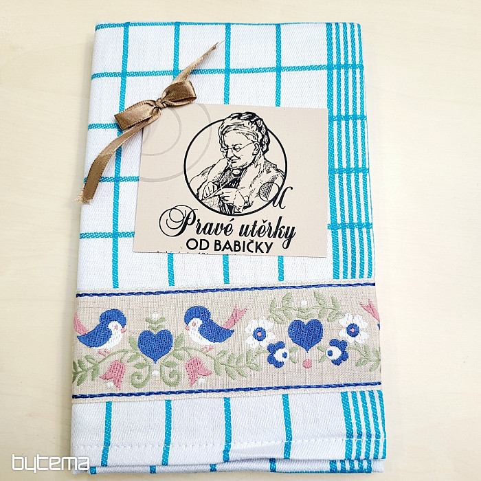 Mehke bombažne kuhinjske krpe s karo vzorcem in spodnjim robom z ljubkimi ptički. Čudovita in nežna dekoracija za vašo kuhinjo.