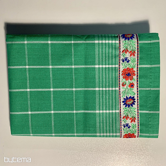 Mehke bombažne kuhinjske krpe s karo vzorcem in cvetličnim robom na spodnjem delu. Čudovita in nežna dekoracija za vašo kuhinjo.