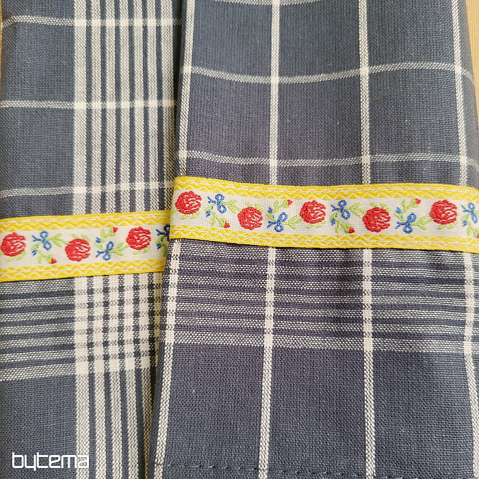 Mehke bombažne kuhinjske krpe s karo motivom in cvetličnim robom. Čudovita in nežna dekoracija za vašo kuhinjo.