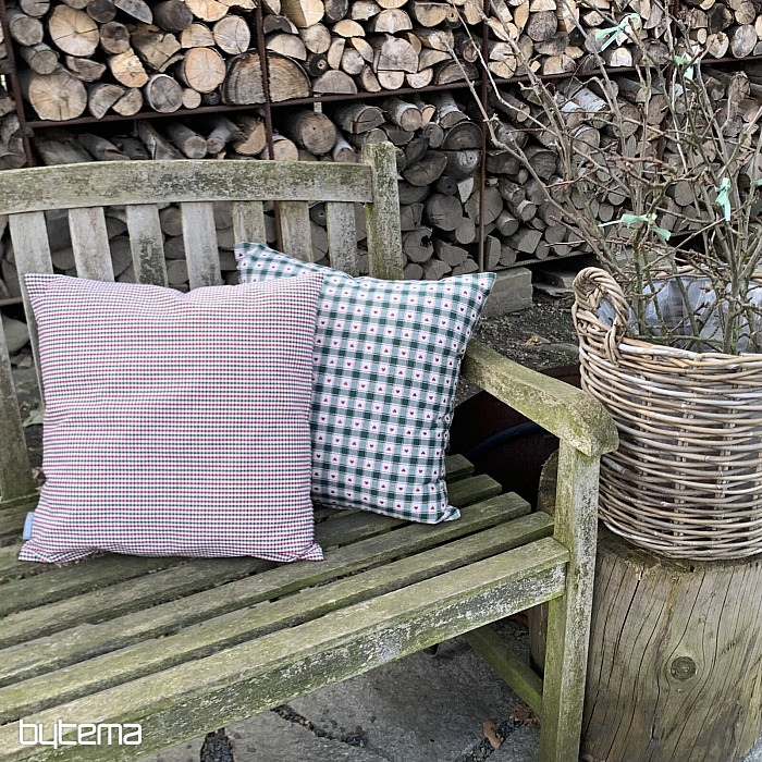 Dekorativne prevleke za blazine v šahovnici in srčnem vzorcu so kot nalašč za podeželske koče in brunarice.