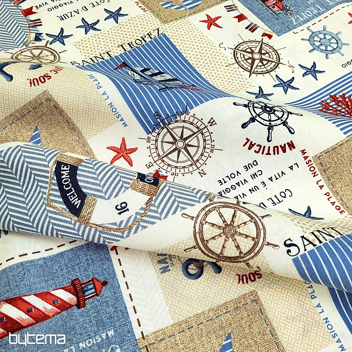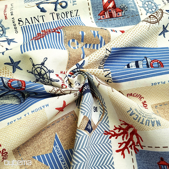 Dekorativna tkanina z navtičnim motivom. Čudovita poletna dekoracija za vse ljubitelje morja in daljnih dežel.