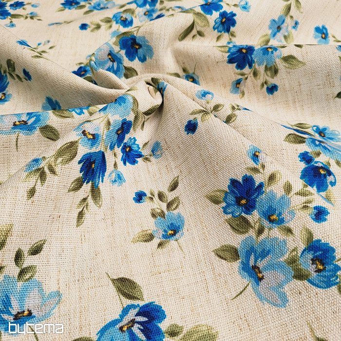 Dekorativna tkanina s spomladanskim cvetjem v modri barvi pozabljivk bo okrasila vašo kuhinjo in pergolo.
