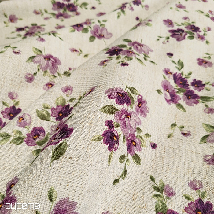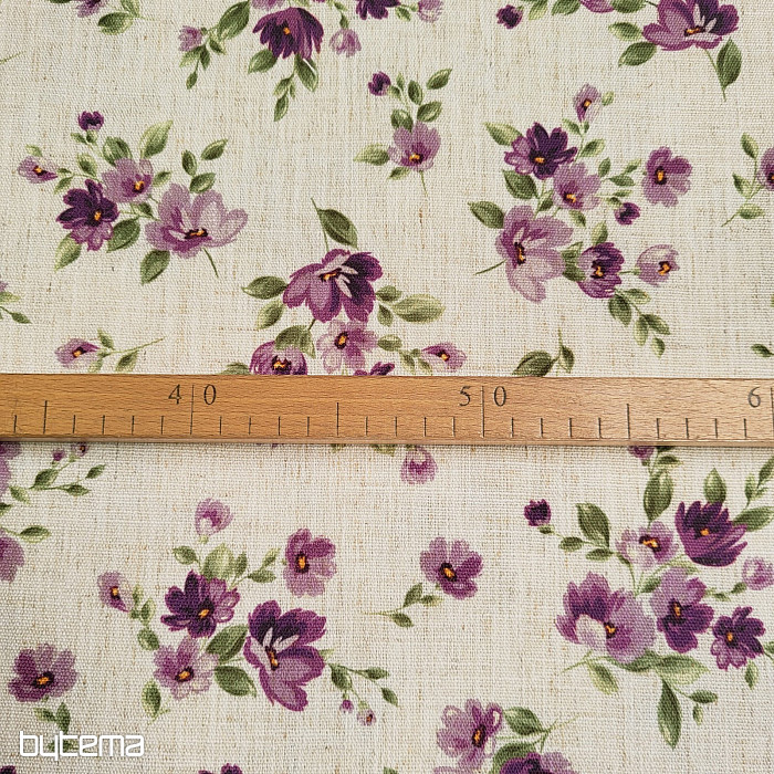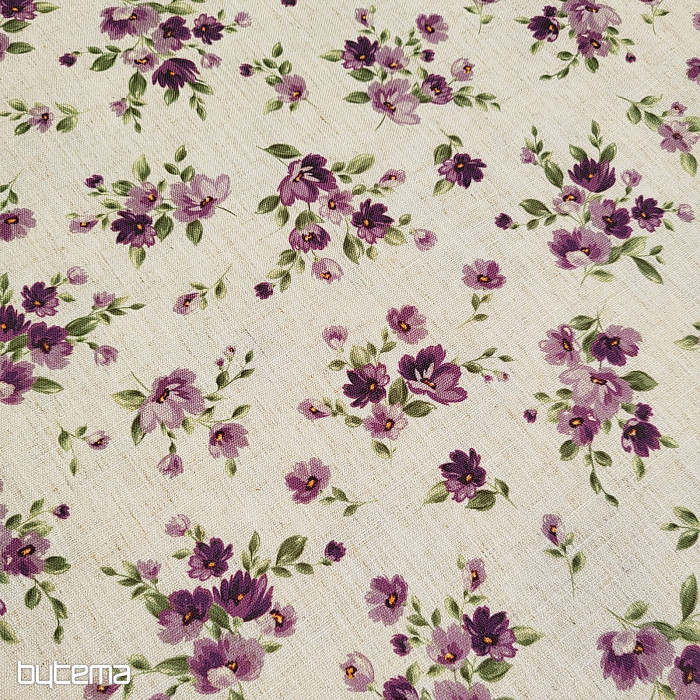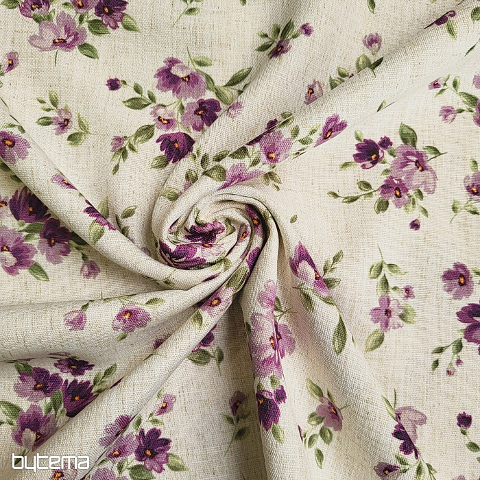 Dekorativna tkanina s spomladanskim cvetjem v temno vijolični barvi bo okrasila vašo kuhinjo in pergolo.
