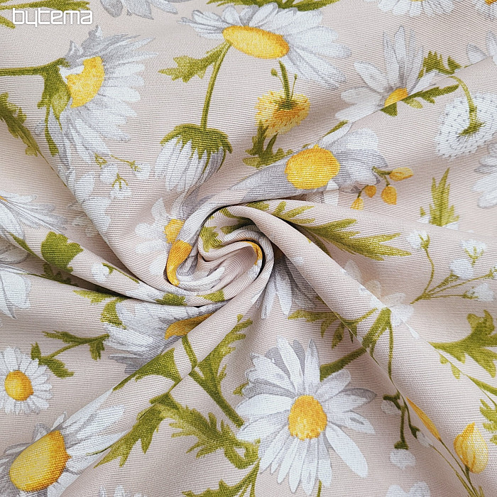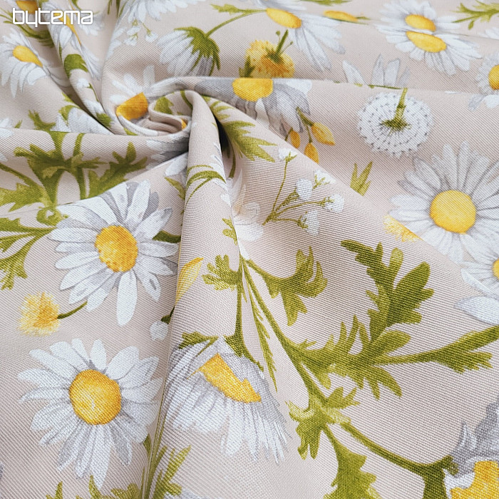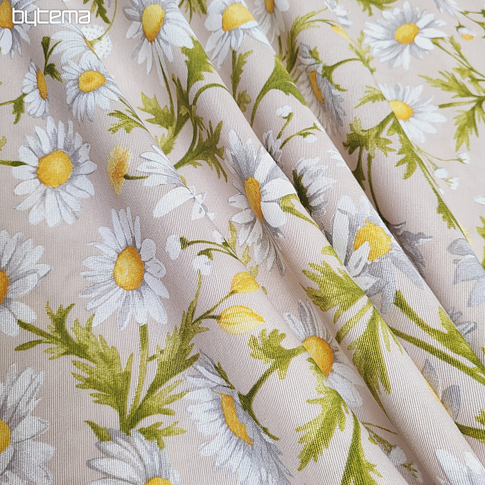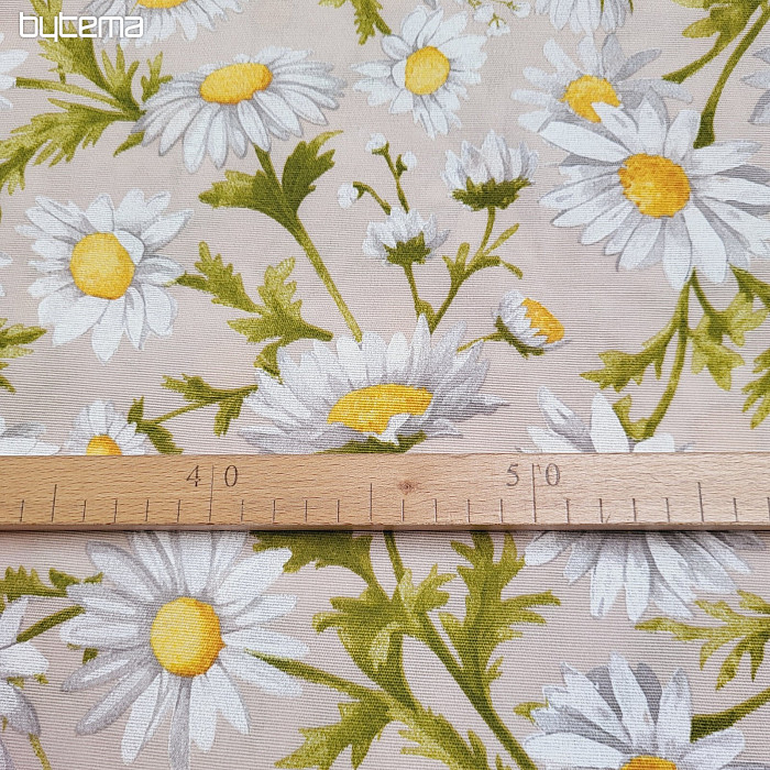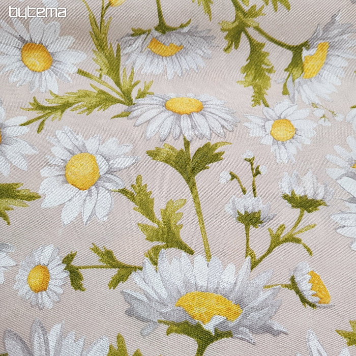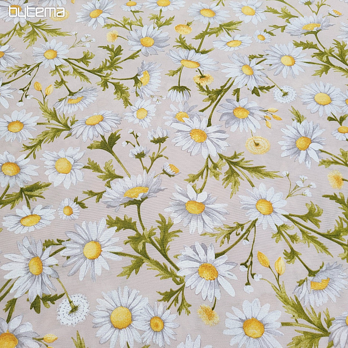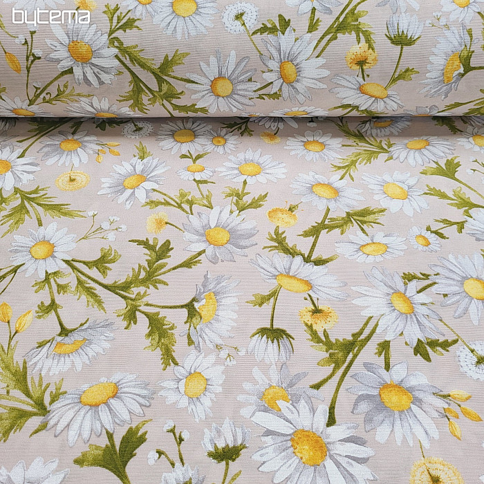 Marjetice, kot da so žive. Dekorativna tkanina s cvetočimi marjeticami, ki bo polepšala vaš kavč doma ali na terasi.