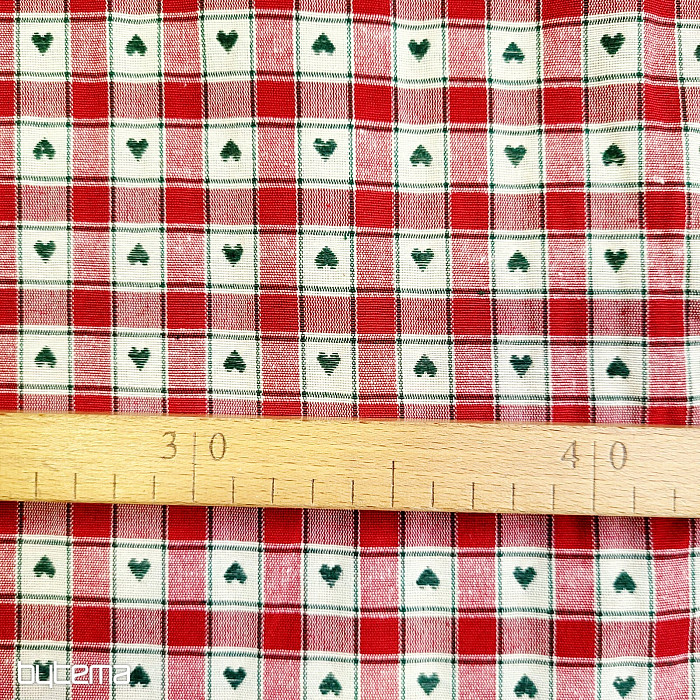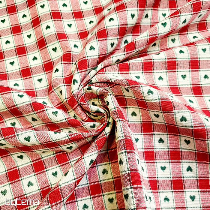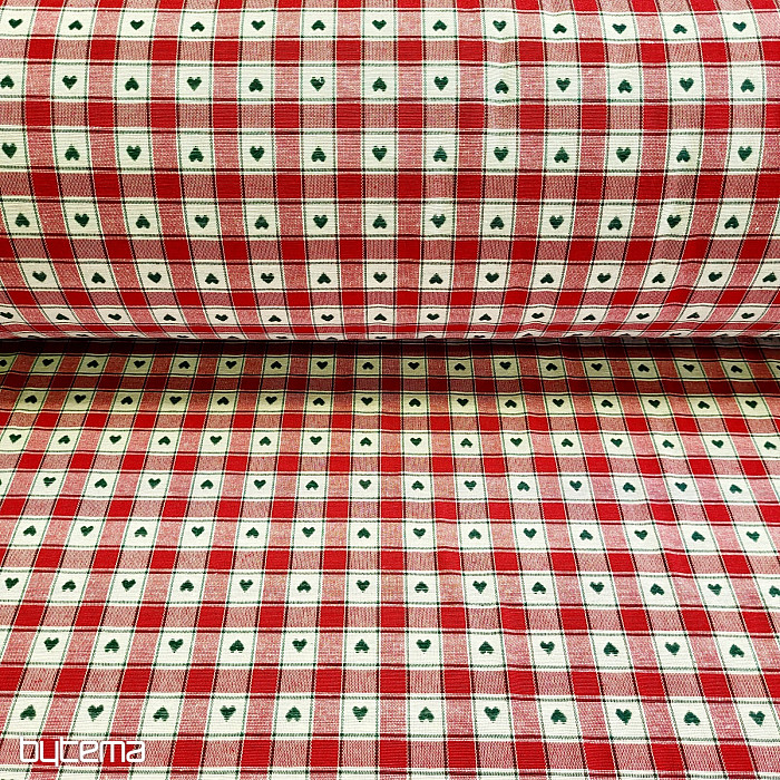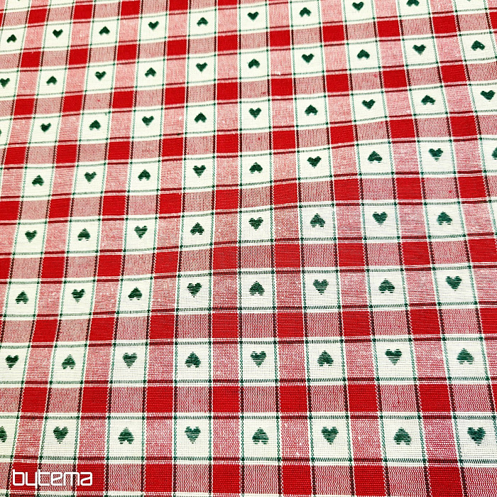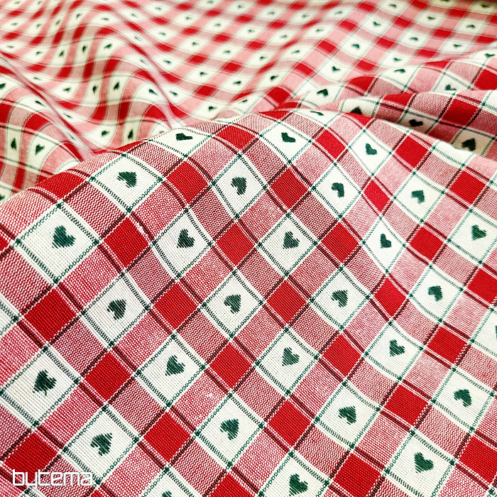 Dekorativna tkanina v vzorcu šahovnice in srca je kot nalašč za podeželske koče in brunarice.
