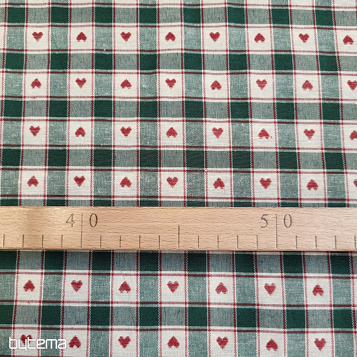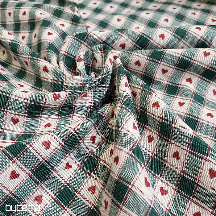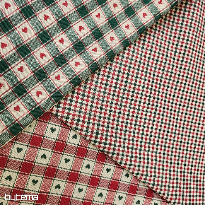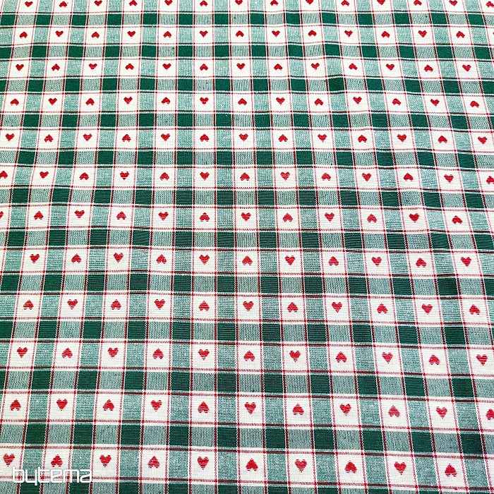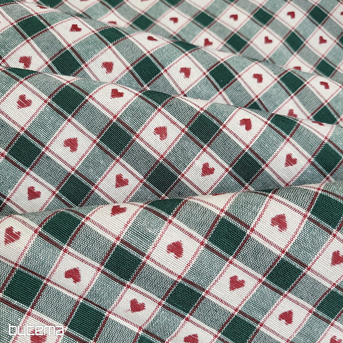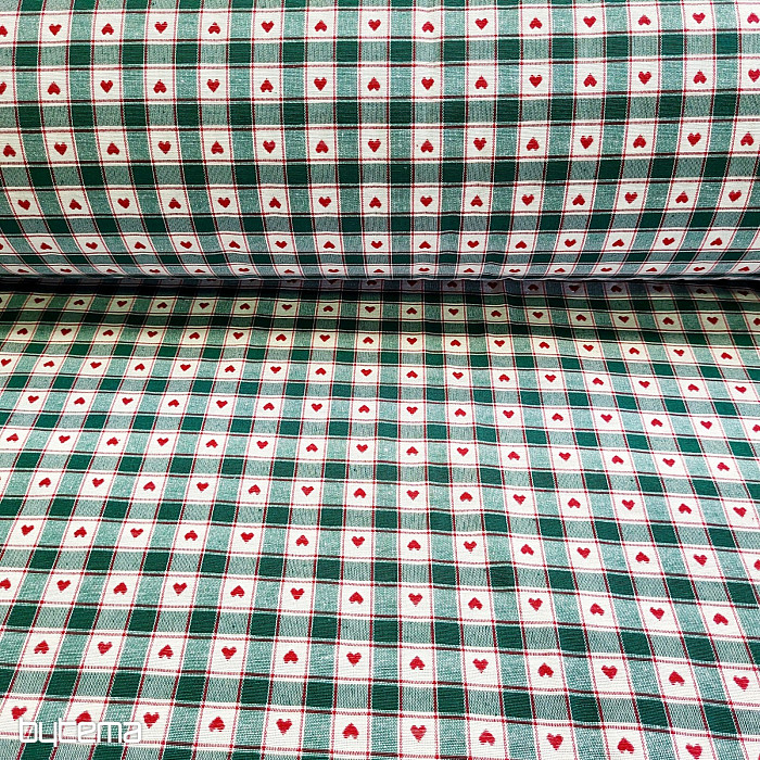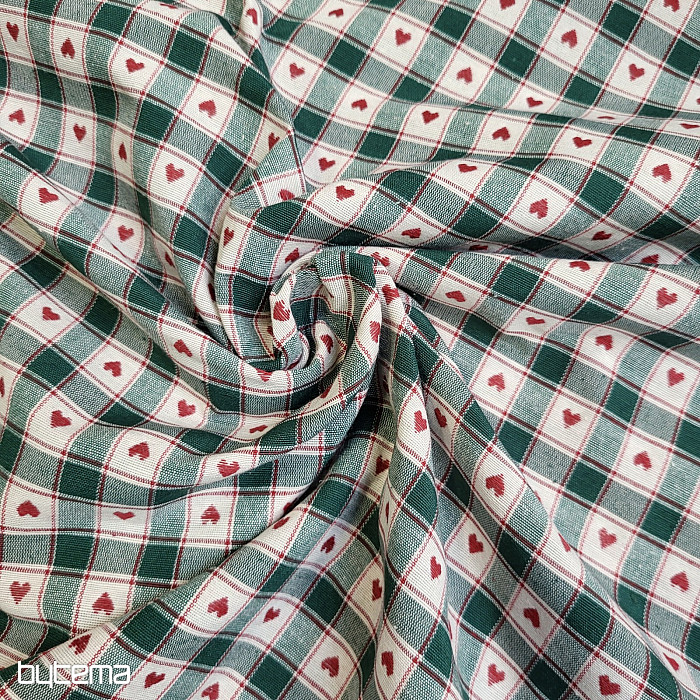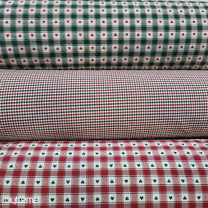 Dekorativna tkanina v vzorcu šahovnice in srca je kot nalašč za podeželske koče in brunarice.
