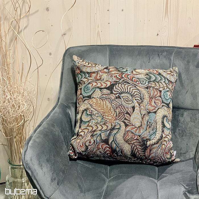 Presenetljiva tapiserijska blazina, ki bo moderni notranjosti dodala globino in značaj.