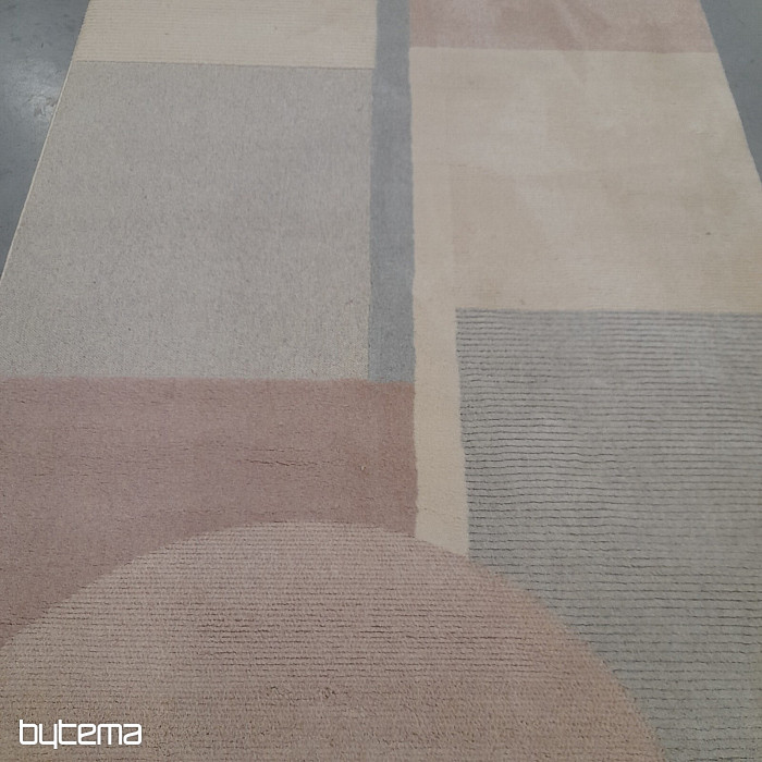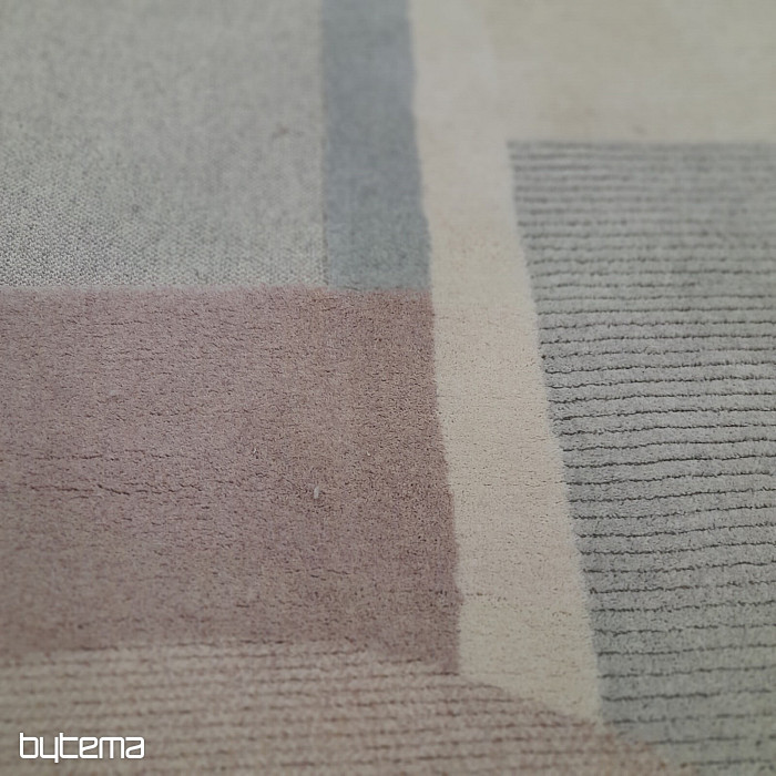 Razkošna belgijska preproga v pastelnih barvah s 3D geometrijskimi vzorci. Plastičen učinek ustvarja različno razporejena vlakna, ki so izdelana iz ovčje volne. To zagotavlja preprogi visoko odpornost in vzdržljivost.