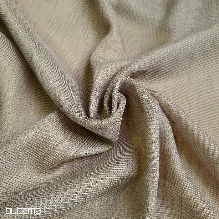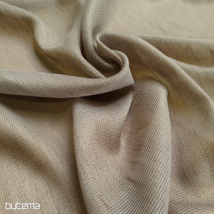 Zavesa je na otip mehka, a gosto tkana s temno bež nitjo, ki ustvarja kvadratke.