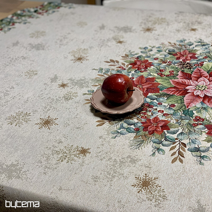 Božični okrogli tapiserijski prti z motivom božične vrtnice bodo čudovita dekoracija vaše božične mize.