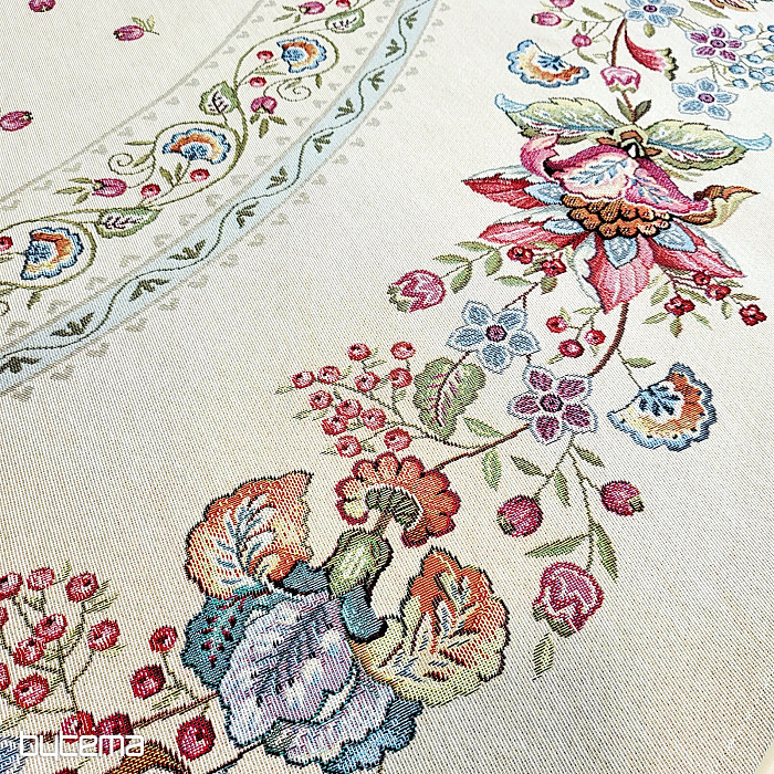 Okrogel prt z naslikanim cvetjem. Lepota in nežnost v vsaki podrobnosti.