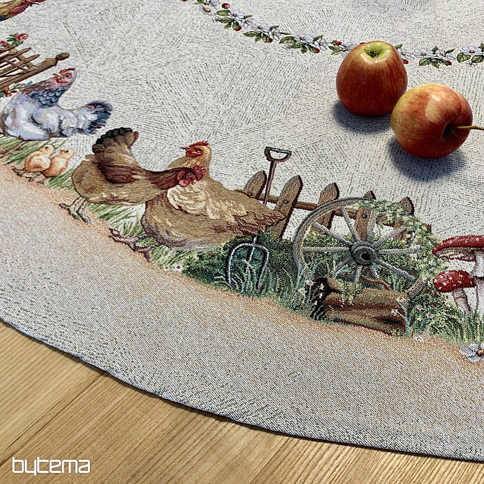 Okrogel prt iz trpežne tapiserije bo navdušil vsakega kmeta ali ljubitelja živali.
