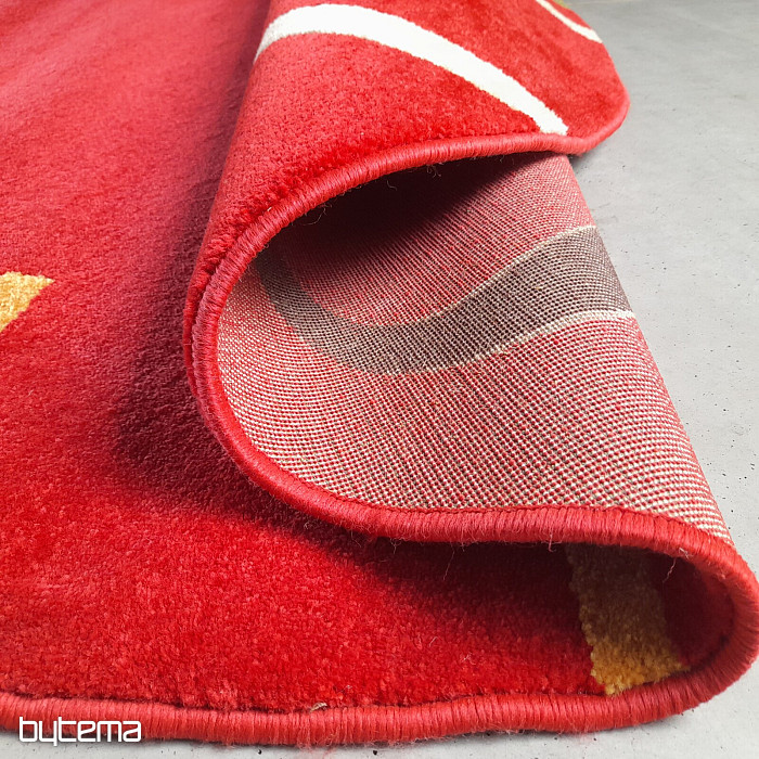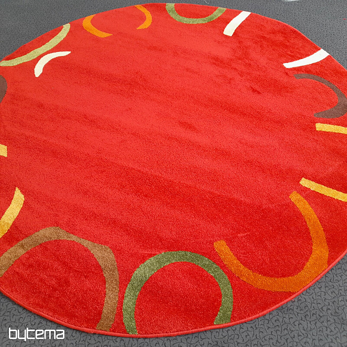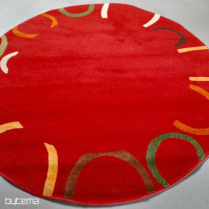 Redek kos krožne preproge v bogatih barvah, kjer prevladuje živo rdeča.