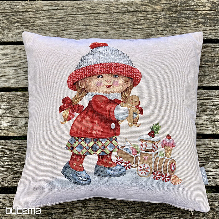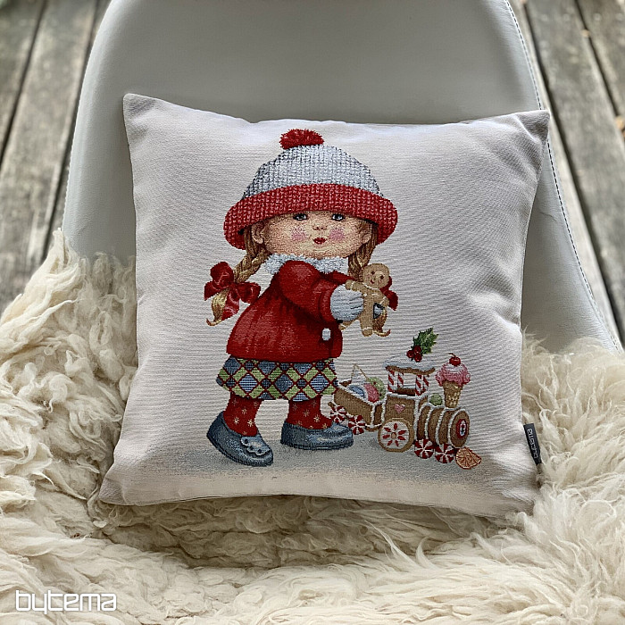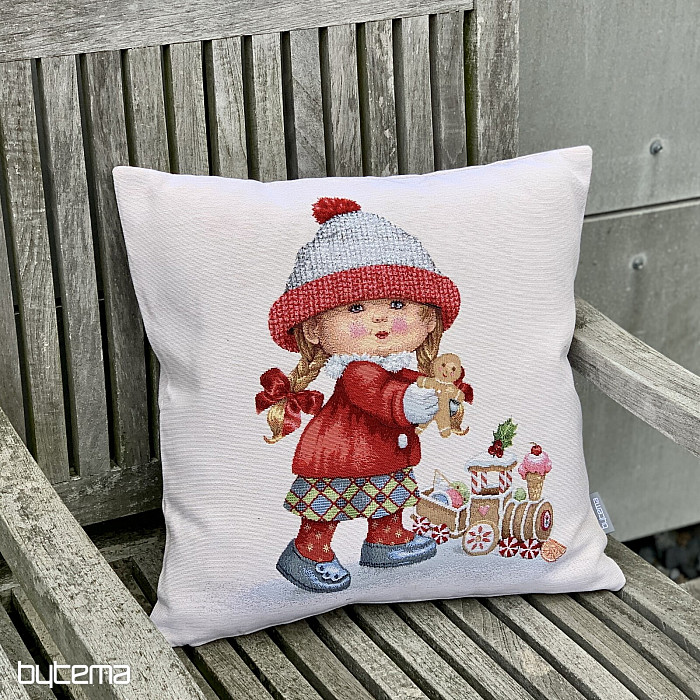 Tako čarobna je okrasna blazina iz gobelina z zimskim motivom DEKLICA z igračo.