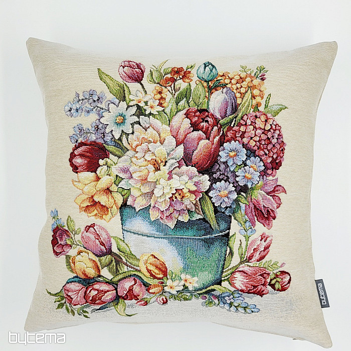 Prevleka za vzglavnik iz tapiserije, polna spomladanskih barv in rož, bo okrasila vsak prostor v vašem domu.