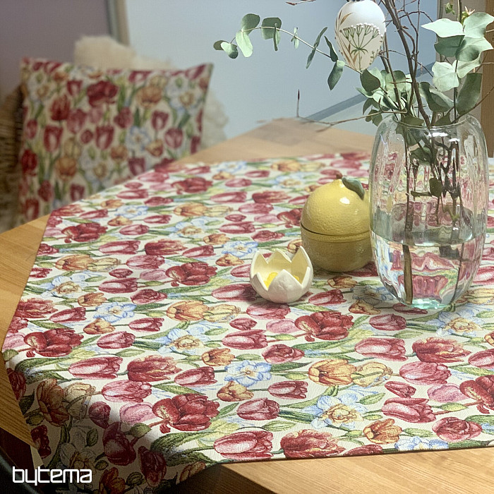 Prekrasna tapiserija s spomladanskimi cvetovi tulipanov in narcis. Čudovita pisana poplava cvetja in pomladi v vašem domu.