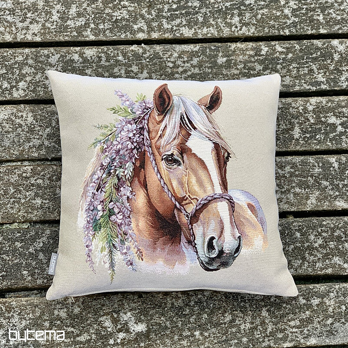 Tapiserijska prevleka za blazino z romantičnim konjem. Čudovita in nežna dekoracija za ljubitelje konj. Primerna kot odlično darilo.