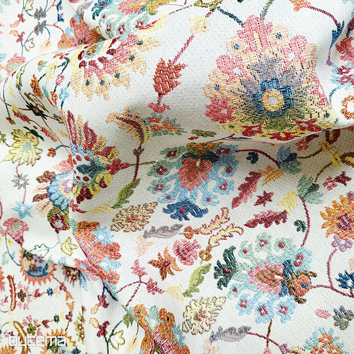 Tapiserija z značilnimi indijskimi cvetovi, ki ustvarjajo zanimive okraske, je naša nova pridobitev v trgovini.