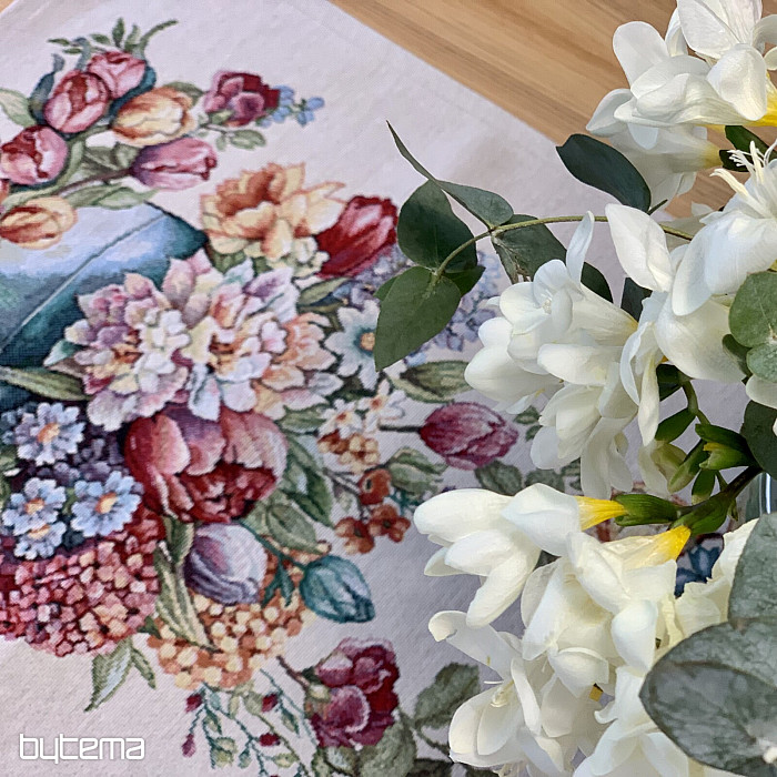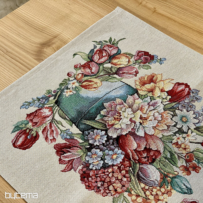 Gobelin prt in šal, poln spomladanskih barv in rož, bosta okrasila vsako mizo v vašem domu. Lepo ju lahko kombinirate z vzglavnikom v enakem dizajnu. Vaša hiša bo polna spomladanskega cvetja.