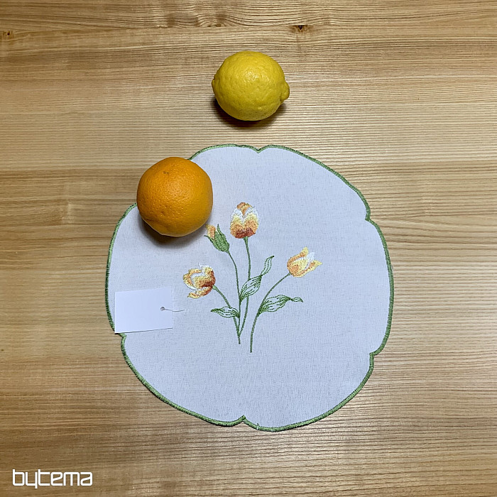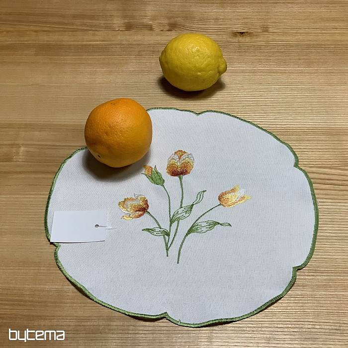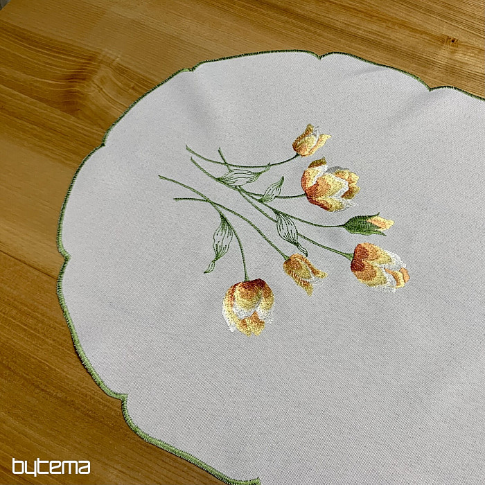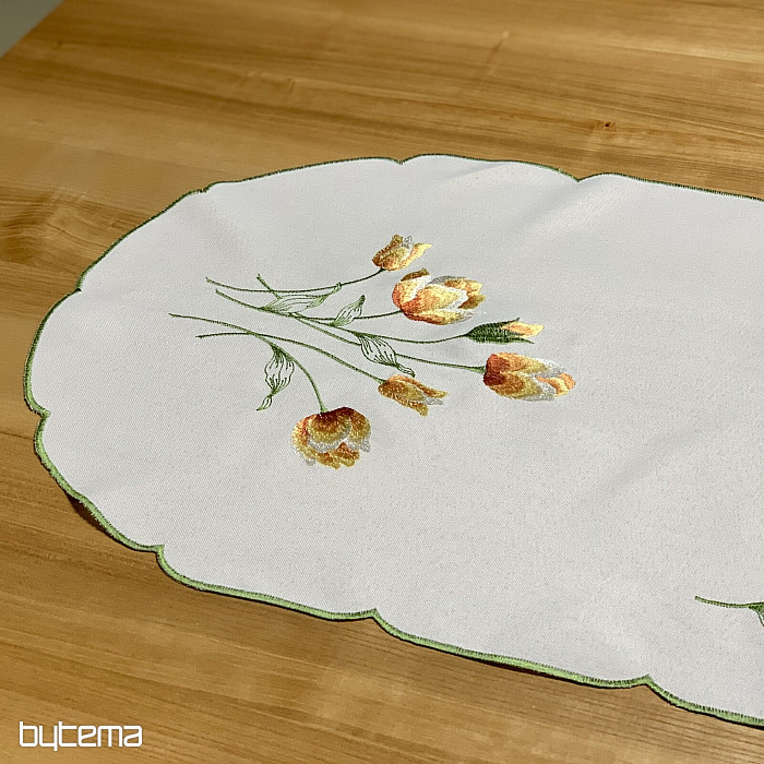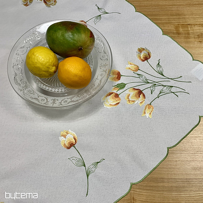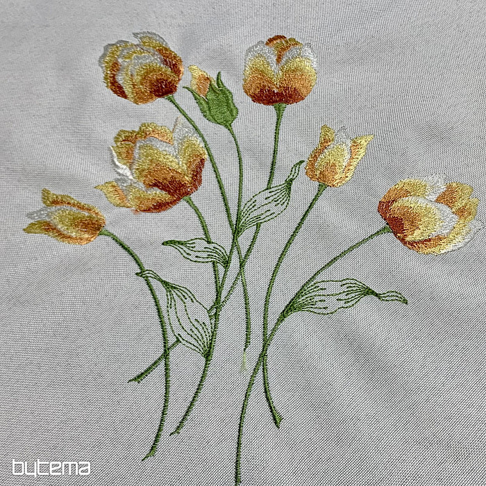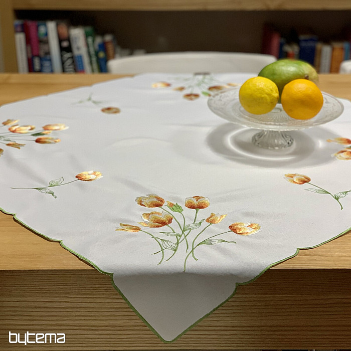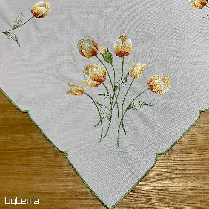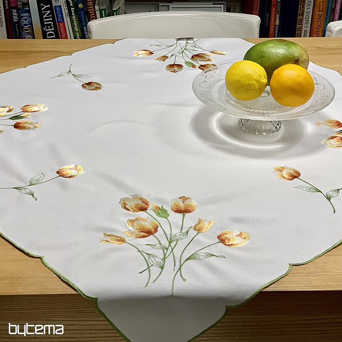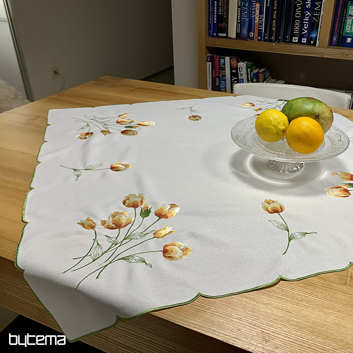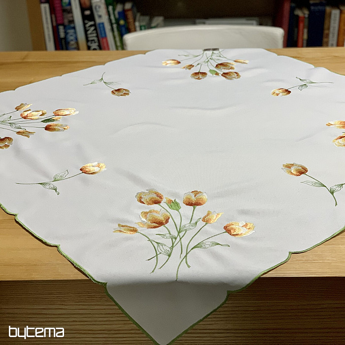 Vezen prt in šal z motivom oranžnih tulipanov, čudovita vezenina najljubših spomladanskih rož.