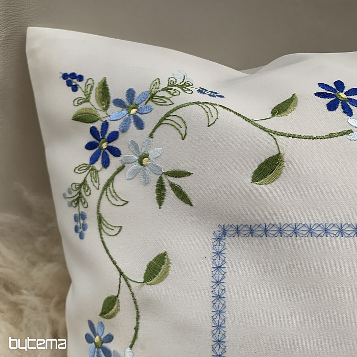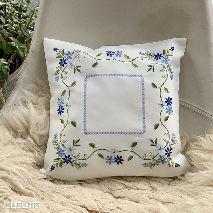 Nežna vezena okrasna prevleka z nežnim pozabljivim motivom.
