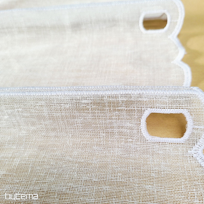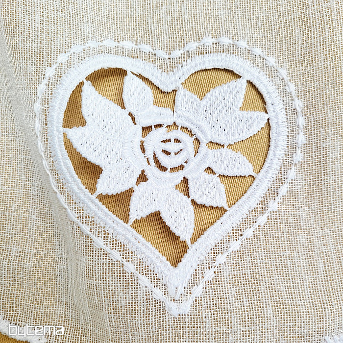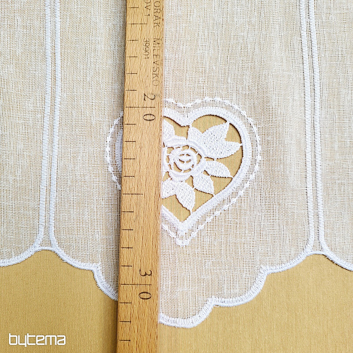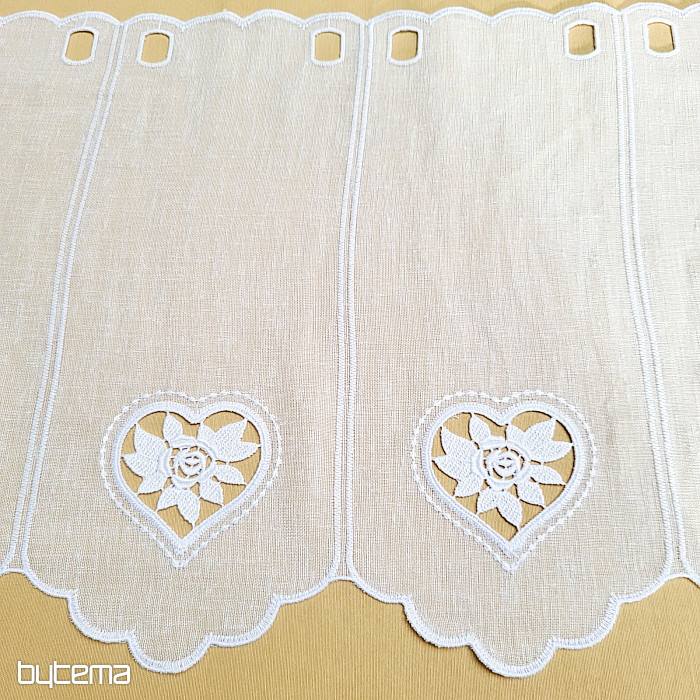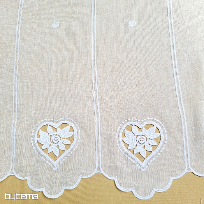 Zavesa, visoka 70 cm, ima na sredini izvezeno majhno srce.