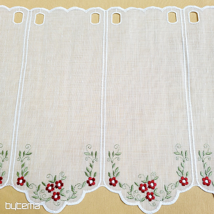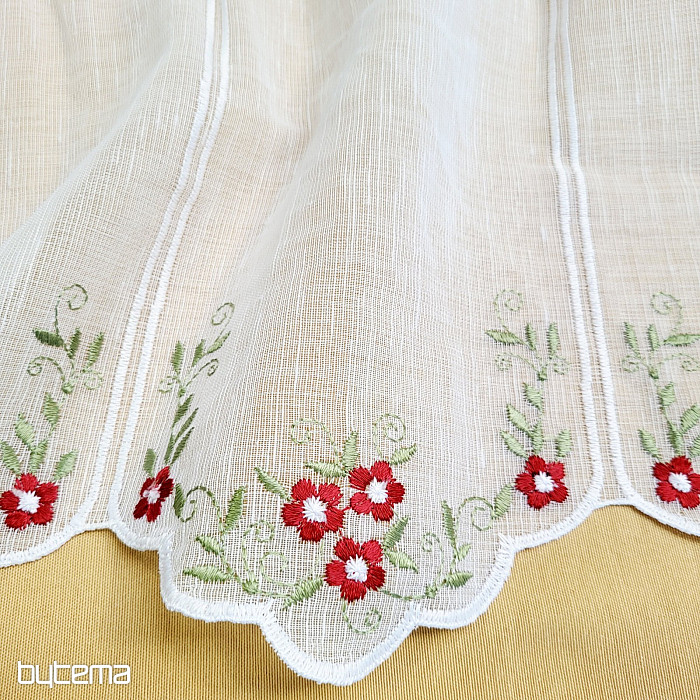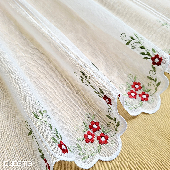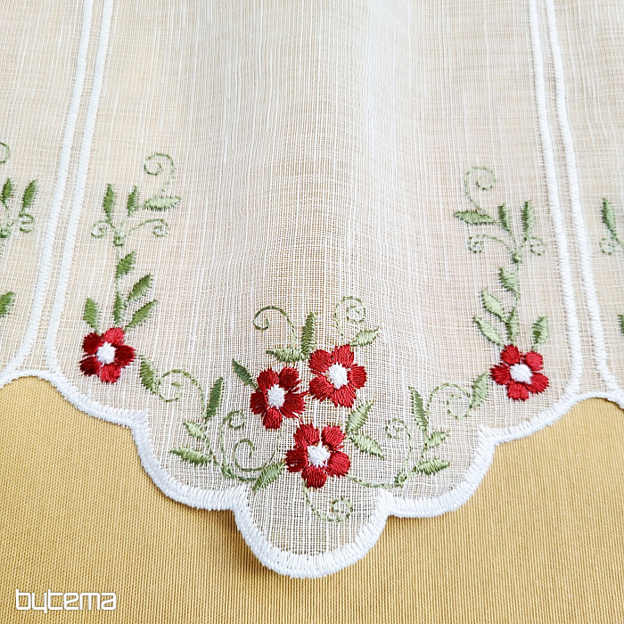 Zaveso ponujamo v treh višinah. Pri višini 60 cm in 90 cm ima zavesa na sredini panela izvezen cvet.