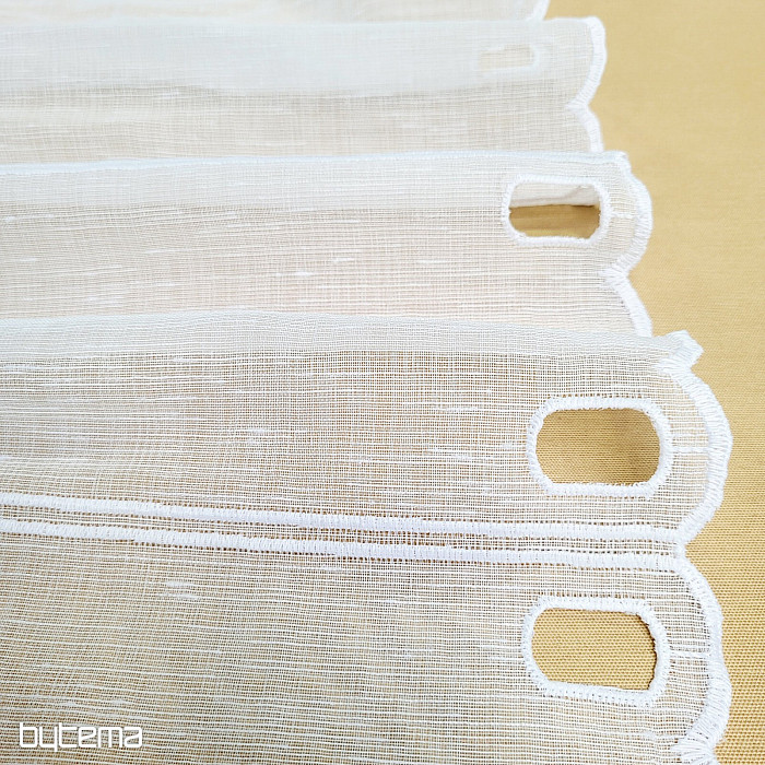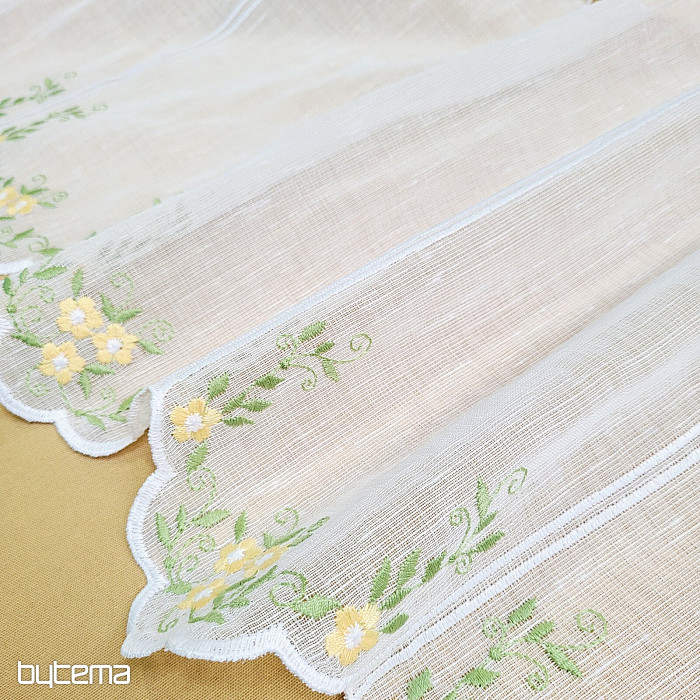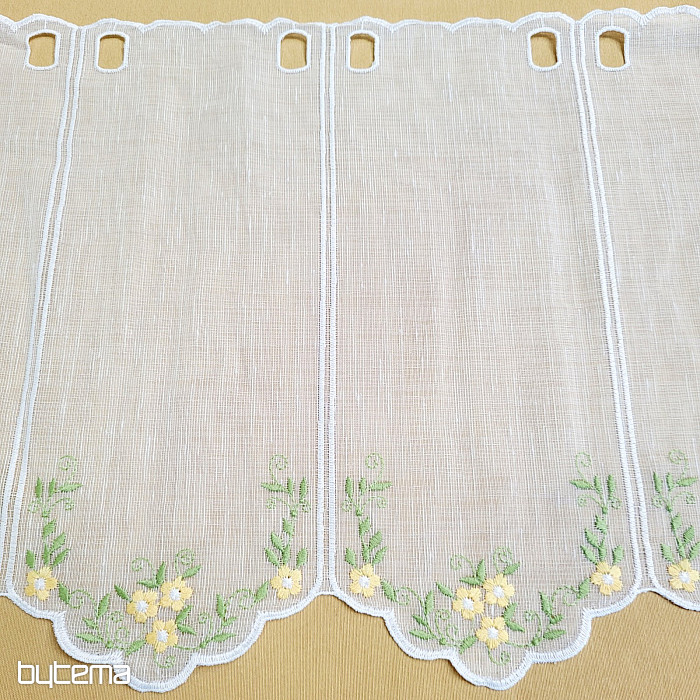 Zaveso ponujamo v treh višinah. Pri višini 60 cm in 90 cm ima zavesa na sredini panela izvezen cvet.