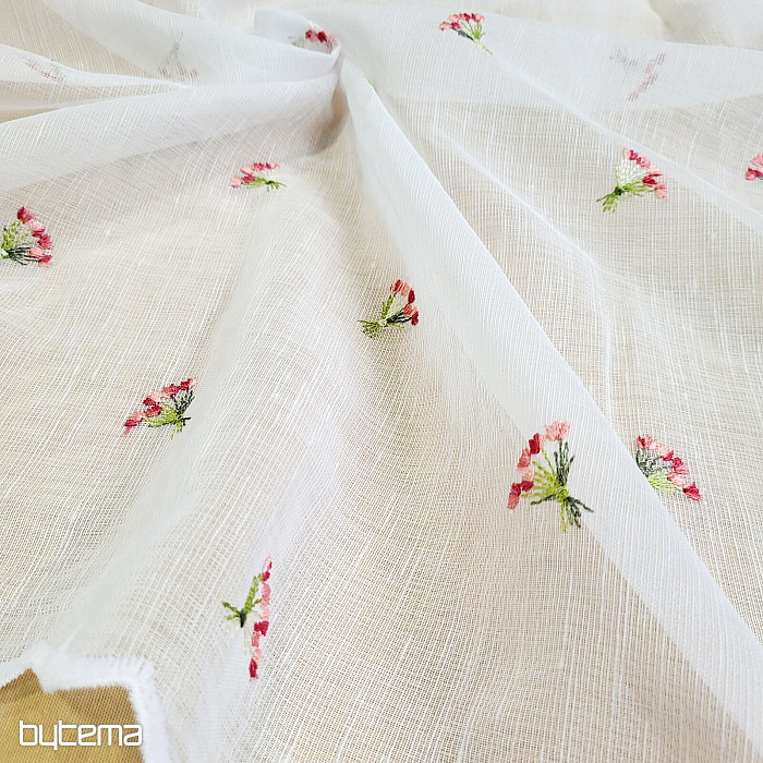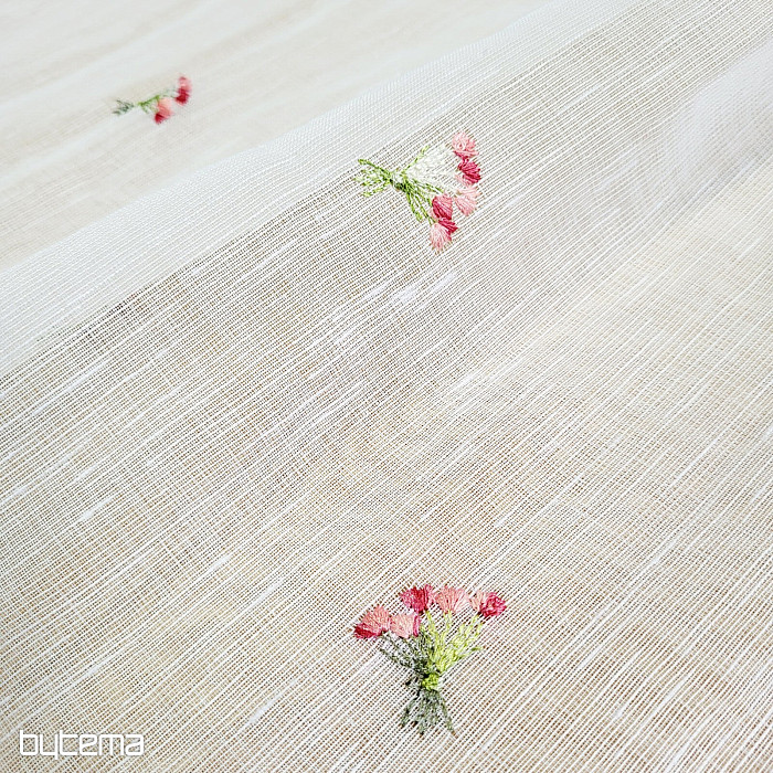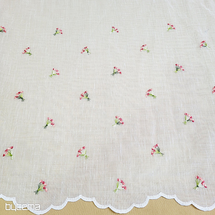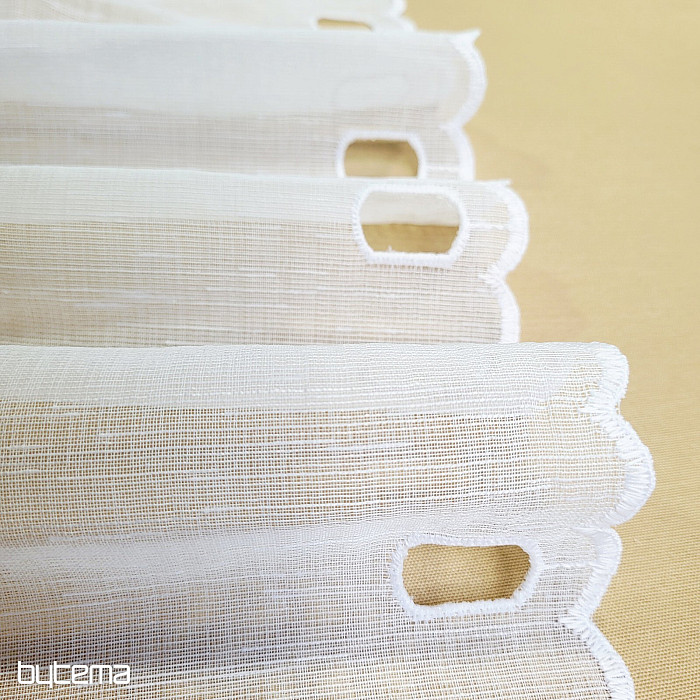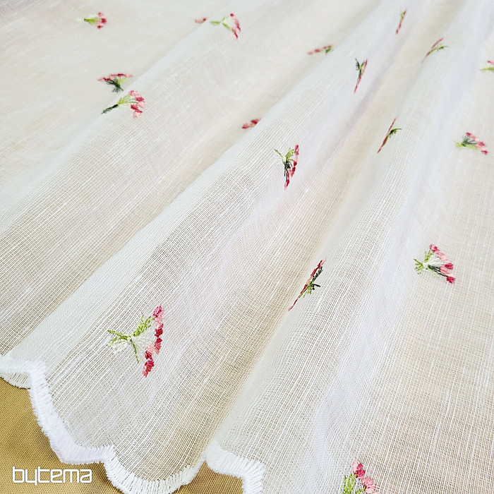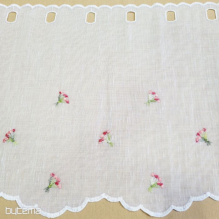 Zaveso ponujamo v treh višinah. Pri višini 60 cm in 90 cm ima zavesa na sredini panela izvezen cvet.