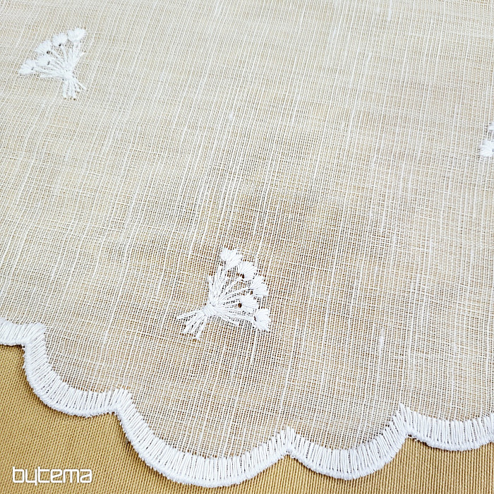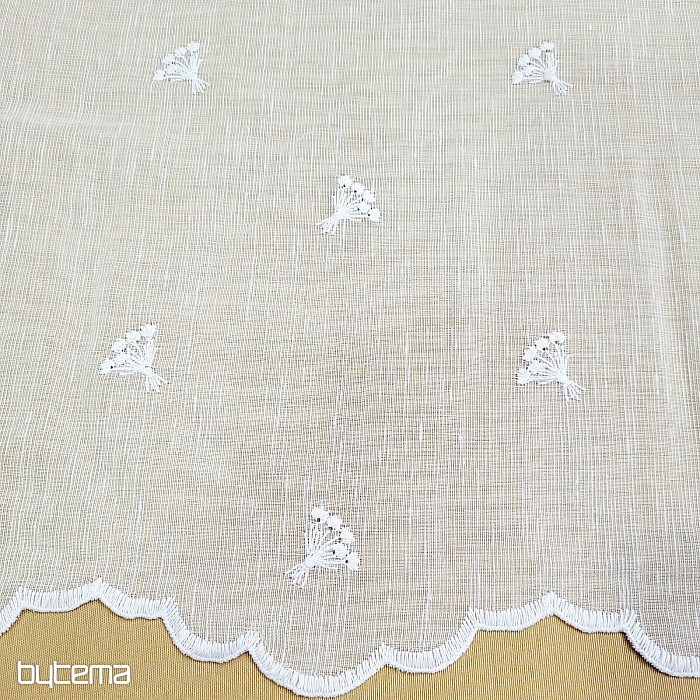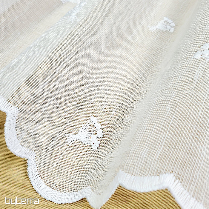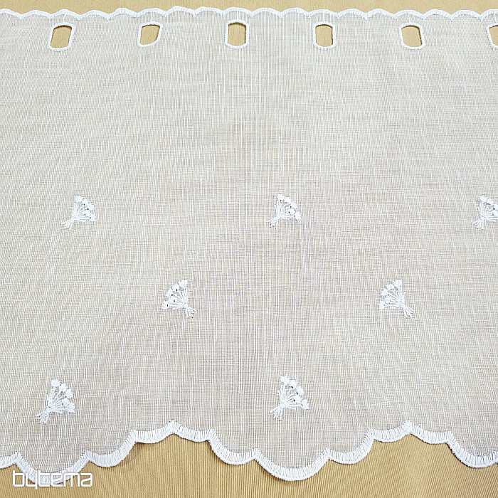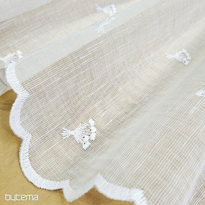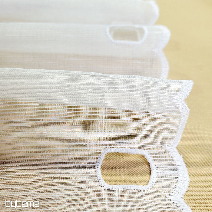 Zaveso ponujamo v treh višinah. Pri višini 60 cm in 90 cm ima zavesa na sredini panela izvezen cvet.